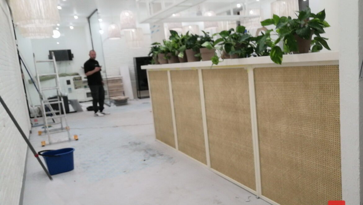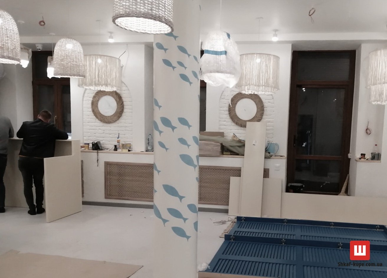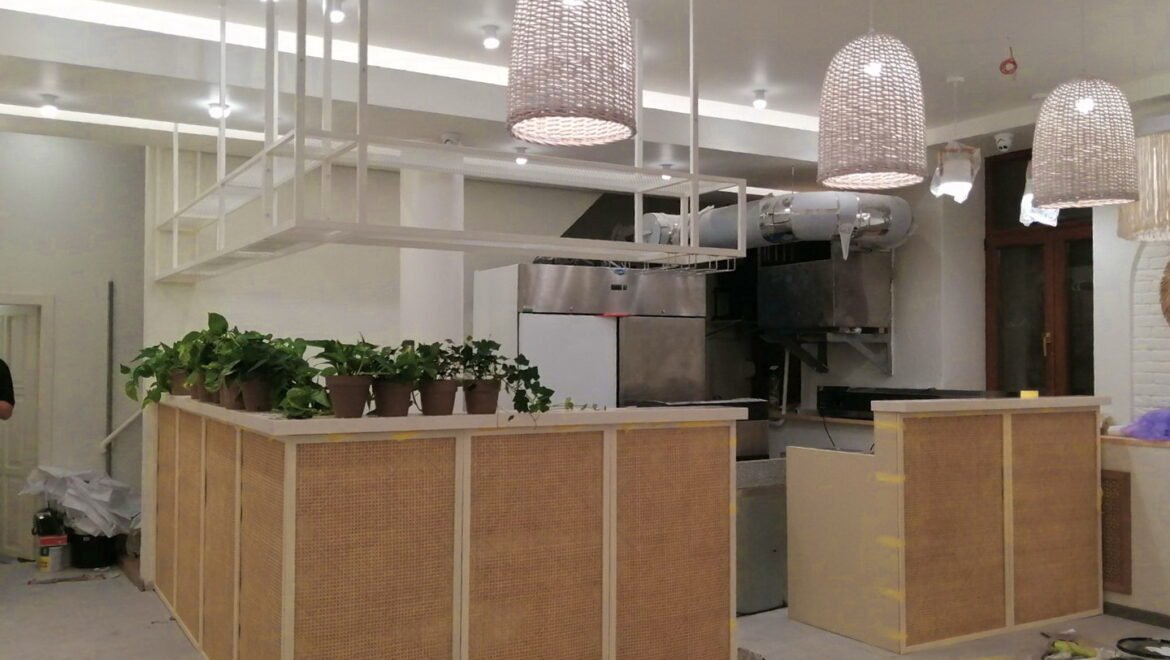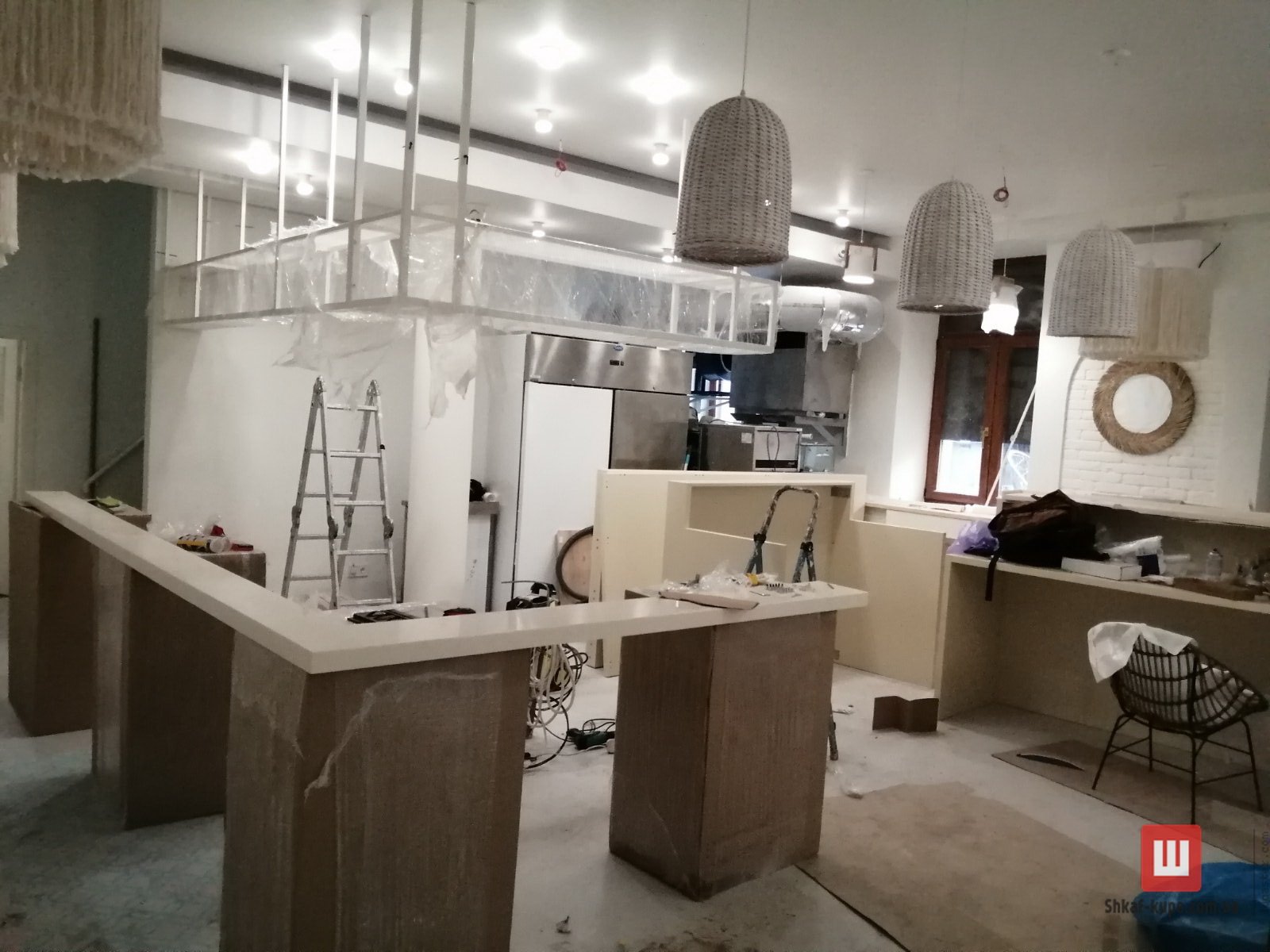 - Освещение: Варианты освещения могут включать встроенные светодиодные подсветки, подсветку над стойкой или вокруг нее, которые создадут эффектный визуальный акцент.