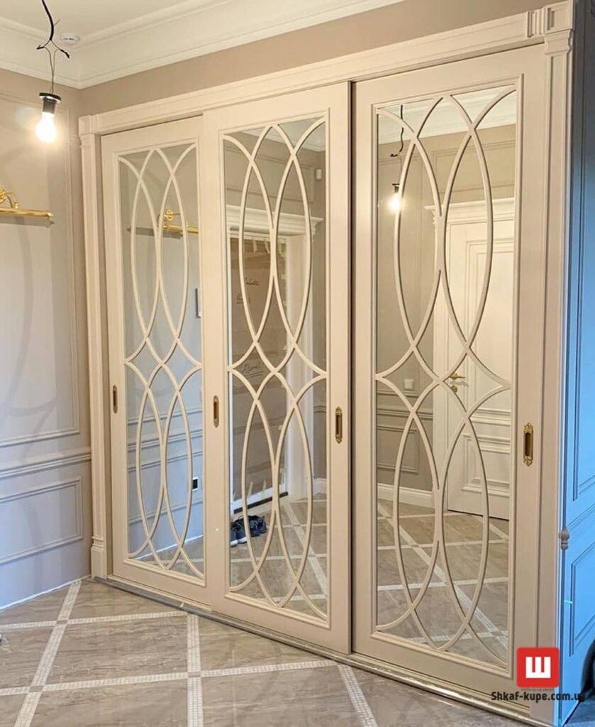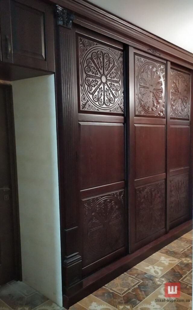 деревянный шкаф в зеркалными дверями в прихожую на заказ